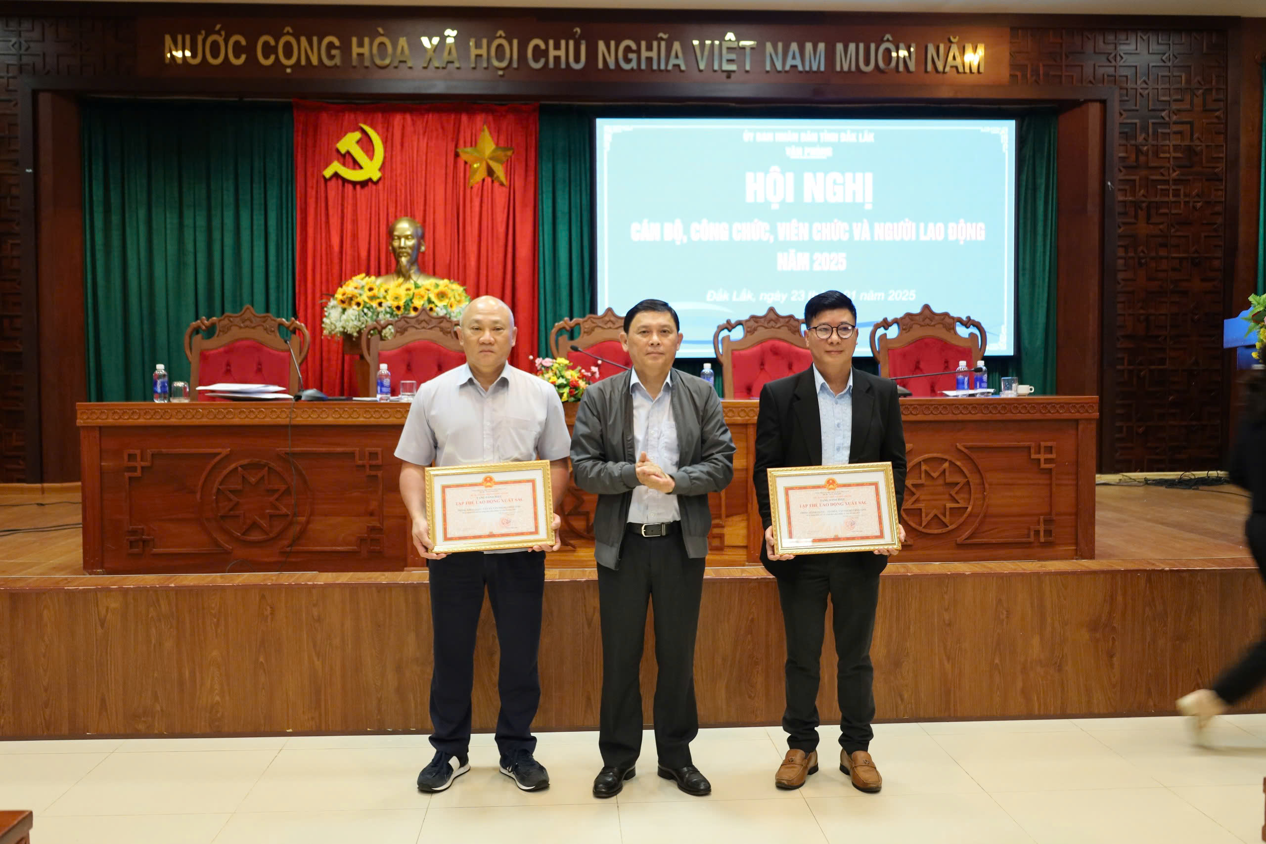 Hội nghị đã trao tặng Bằng khen của Thủ tướng Chính phủ cho 1 tập thể và 2 cá nhân; UBND tỉnh tặng Danh hiệu Tập thể Lao động xuất sắc cho 2 tập thể, tặng bằng khen cho 10 cá nhân thuộc Văn phòng UBND tỉnh đã có thành tích xuất sắc trong thực hiện nhiệm vụ công tác từ năm 2023 đến năm 2024; Văn phòng UBND tỉnh tặng tặng Danh hiệu Tập thể Lao động tiên tiến cho 12 phòng, đơn vị; tặng Danh hiệu Lao động tiên tiến cho 98 cá nhân; tặng Danh hiệu Chiến sĩ thi đua cơ sở cho 91 cá nhân; tặng Giấy khen cho 12 tập thể và 19 cá nhân.