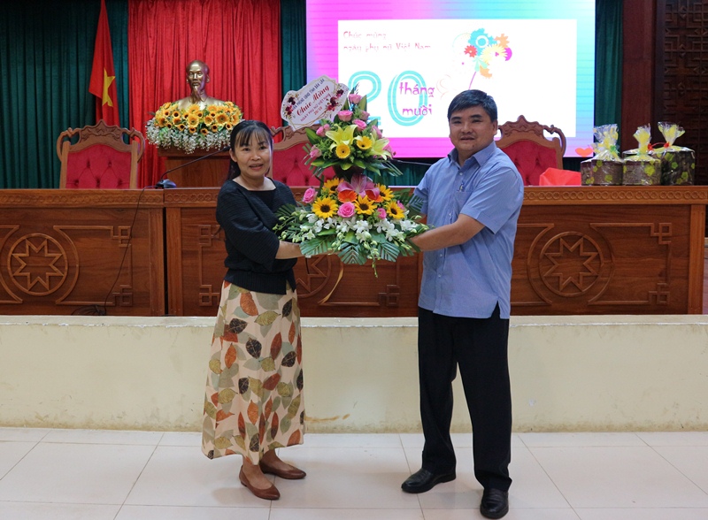 | Phó Bí thư Đảng ủy, Phó Chánh Văn phòng UBND tỉnh Nguyễn Đức Vinh tặng hoa chúc mừng nữ cán bộ, công chức, viên chức, người lao động Văn phòng UBND tỉnh |