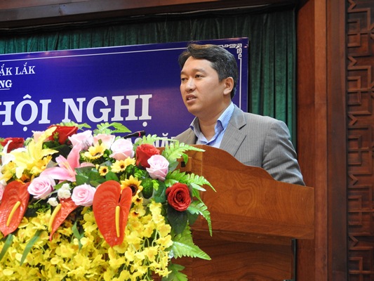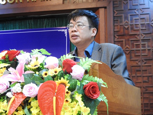| Đồng chí Nguyễn Đức Vinh báo cáo tại hội nghị |