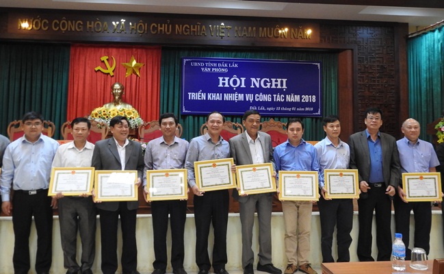 Với những kết quả đã đạt được, lãnh đạo Văn phòng UBND tỉnh đã công nhận Danh hiệu Tập thể Lao động tiên tiến cho 10 phòng, đơn vị và 104 cá nhân (76 cá nhân được công nhận danh hiệu Lao động tiên tiến và 28 cá nhân được công nhận Chiến sĩ thi đua cấp cơ sở). Hội nghị đã trao Giấy khen của Chánh Văn phòng UBND tỉnh cho 8 phòng, đơn vị và 45 CB,CC,VC, NLĐ vì đã có thành tích hoàn thành xuất sắc nhiệm vụ công tác năm 2017.