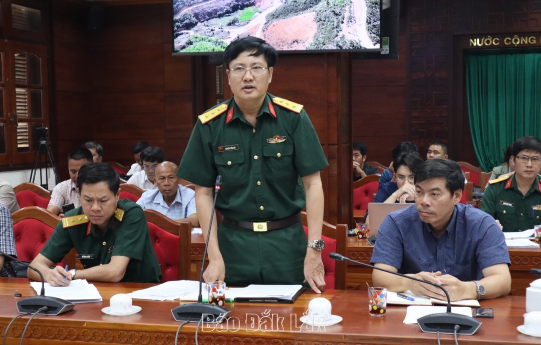 | Đại diện Ban Quản lý dự án 46 (Bộ Tổng tham mưu) nêu các vướng mắc trong quá trình triển khai Dự án đường Trường Sơn Đông |